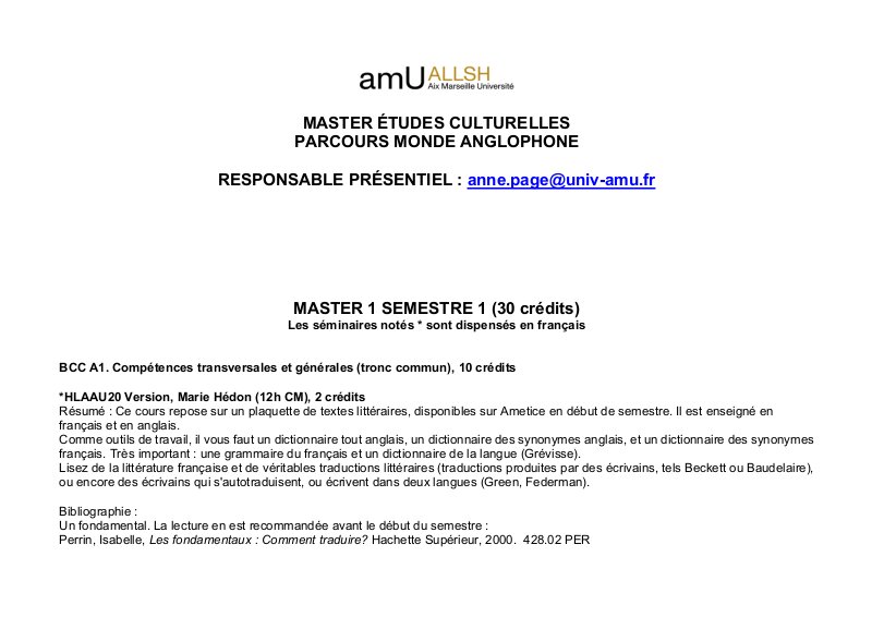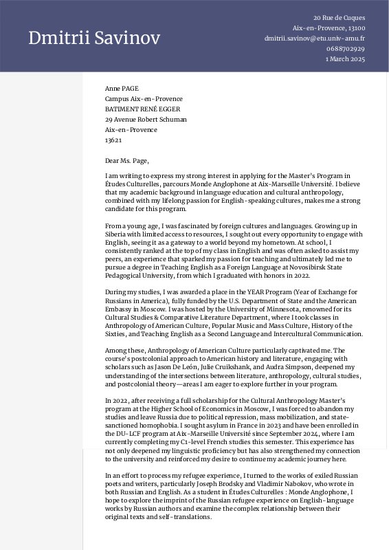 Lettre de motivation pour le programme Études Culturelles (en anglais)